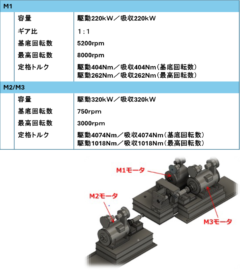 システムとしては3軸ダイナモで、駆動・吸収ともに220~320kWの連続運転に対応。