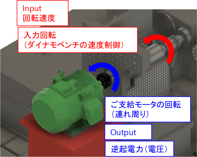 - ご支給のモータを、ダイナモベンチに組み付けて運転します。