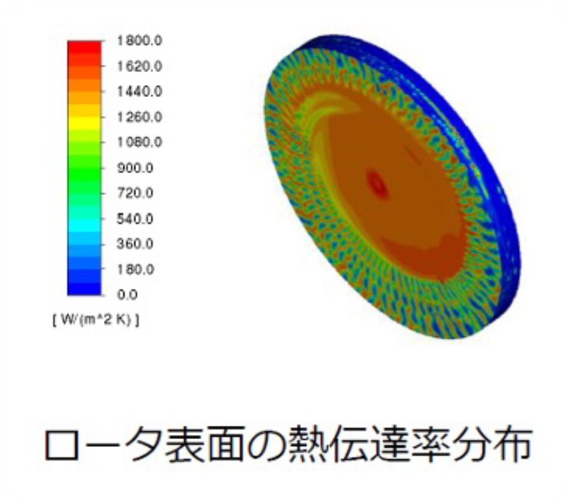 回転体(ロータ)周りの熱流体挙動を解析した事例です。