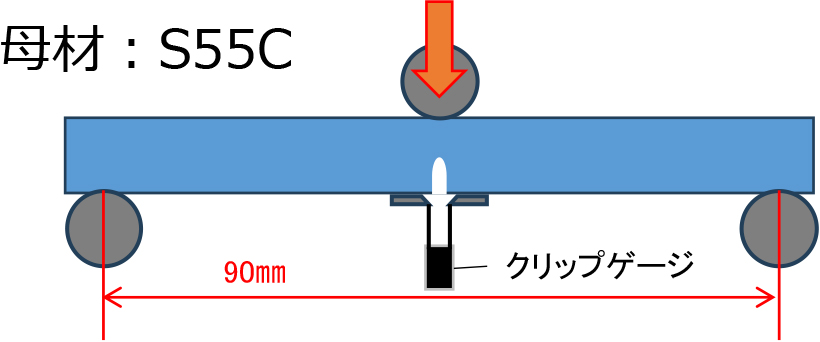 供試体は、機械構造用炭素鋼(S55C)のノッチ付き試験片です(図1参照)。