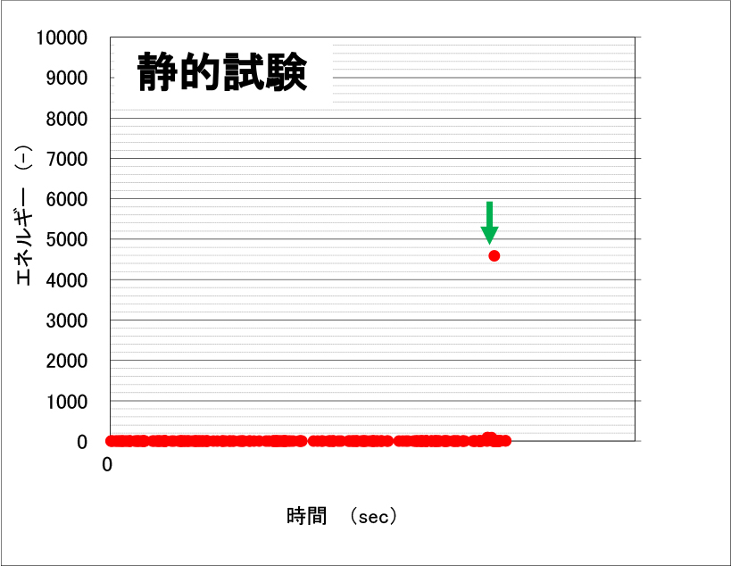 定常時のAEエネルギーが1000未満で推移する中、4,000以上の瞬間的な出力が見られ(図3参照)、その数はき裂の数と一致しております。