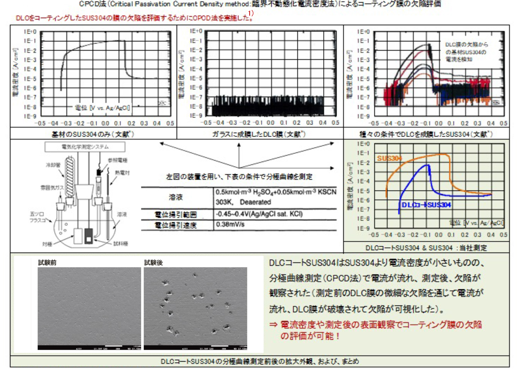 技術内容Aステンレス鋼に施されたコーティング膜の欠陥評価