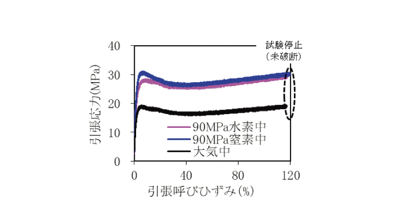 高圧ガス環境下での引張試験結果(試験温度:34℃