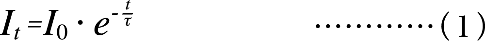 (2)式より、横軸を経過時間 t、縦軸を Log(It)としてプロットし、線形フィッティングによって算出した傾きからキャリアライフタイムを評価する。(出力名:Log(1/e))。
